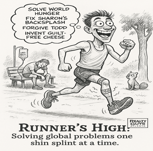 Now, let me introduce you to something called the runner’s high. If you’re a runner, you know it. You crave it. You chase it like it’s the hot bartender who once gave you a free drink and made eye contact for too long.