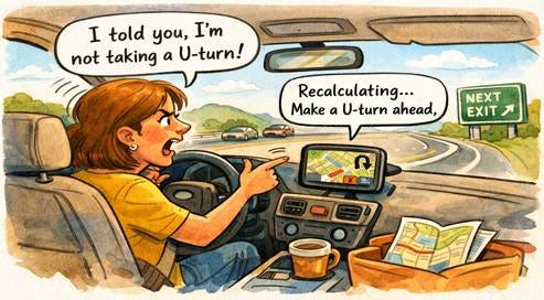She just kept driving… while yelling at the thing actively getting her where she wanted to go.