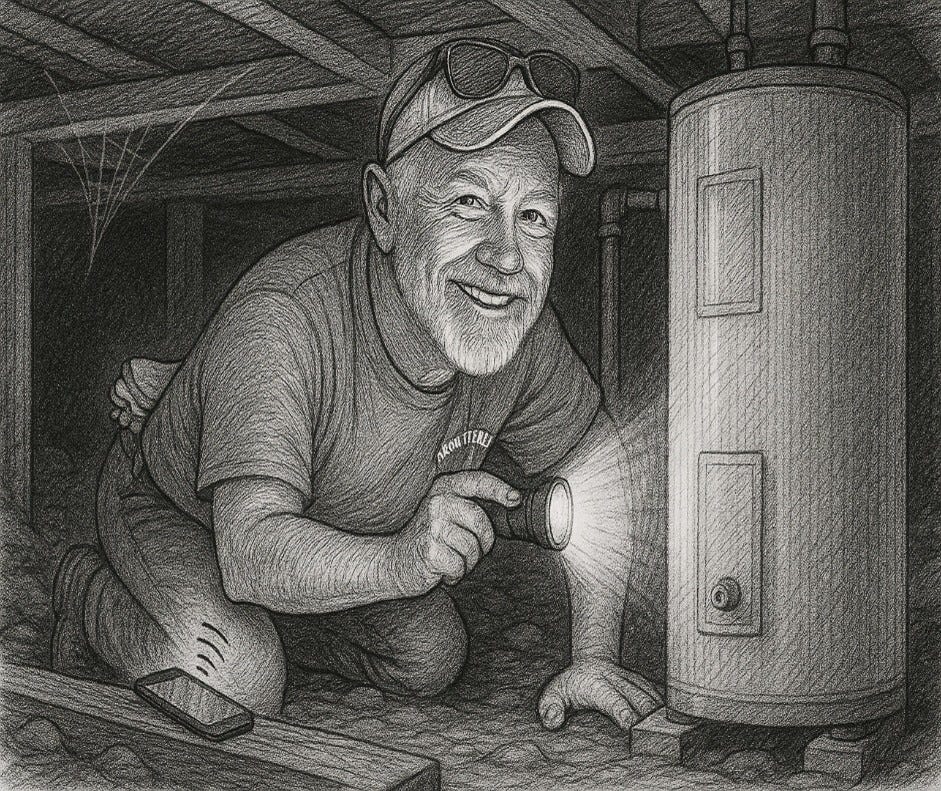 Yes. I was alive. Just stuck in a crawlspace, swatting cobwebs and questioning my life choices. Mainly the one where I agreed to inspect a 1960s Water Heater (and for the record – it is not a HOT Water Heater) with a flashlight from Dollar Tree. I was one spider bite away from becoming a headline: “Local Realtor Dies Heroically Doing What He Hates.”