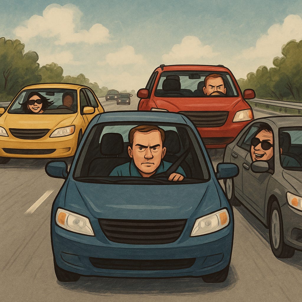 Because if you keep crossing into my lane, I will hit my hazard lights, put on gospel music full blast, and passive-aggressively escort you to the next exit at a brisk 20 mph.